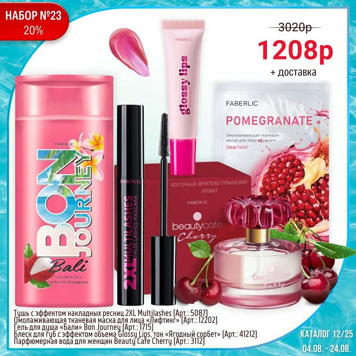 Всем, кто зарегистрируется в Faberlic с 23 марта по 12 апреля 2026 года и совершит покупку в периоде №5/2026, дарим набор уходовой косметики при заказе по следующему каталогу с 13 апреля  по 3 мая 2026 года.